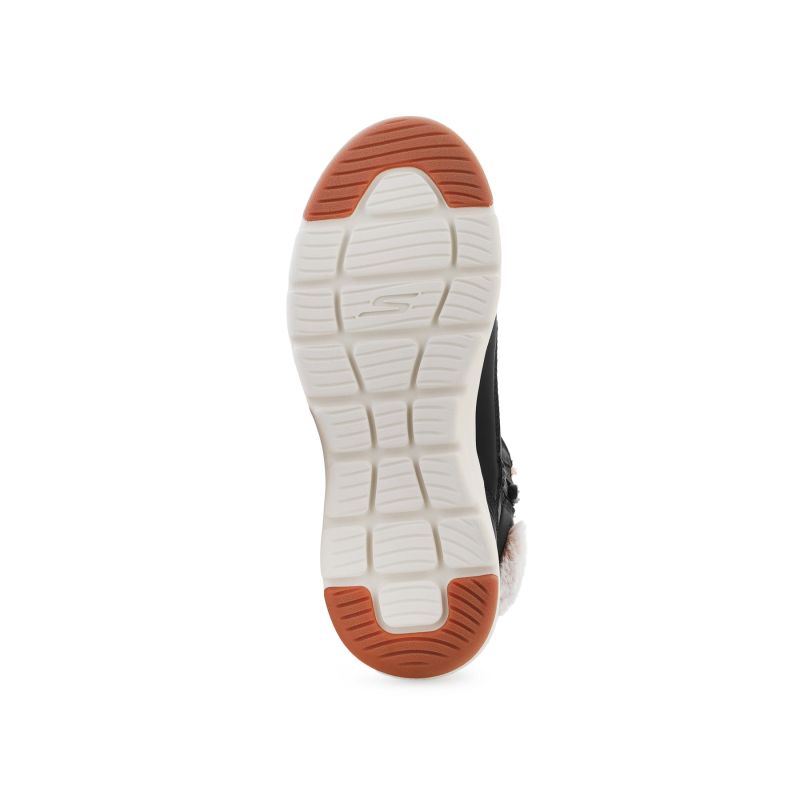 The Skechers Glacial Ultra Mountain Muse 144199-BLK is designed for colder conditions while maintaining urban style. The upper is made of a smooth, embossed vegan leather-like material, which is treated with 3M® Scotchgard® to help repel water and dirt.