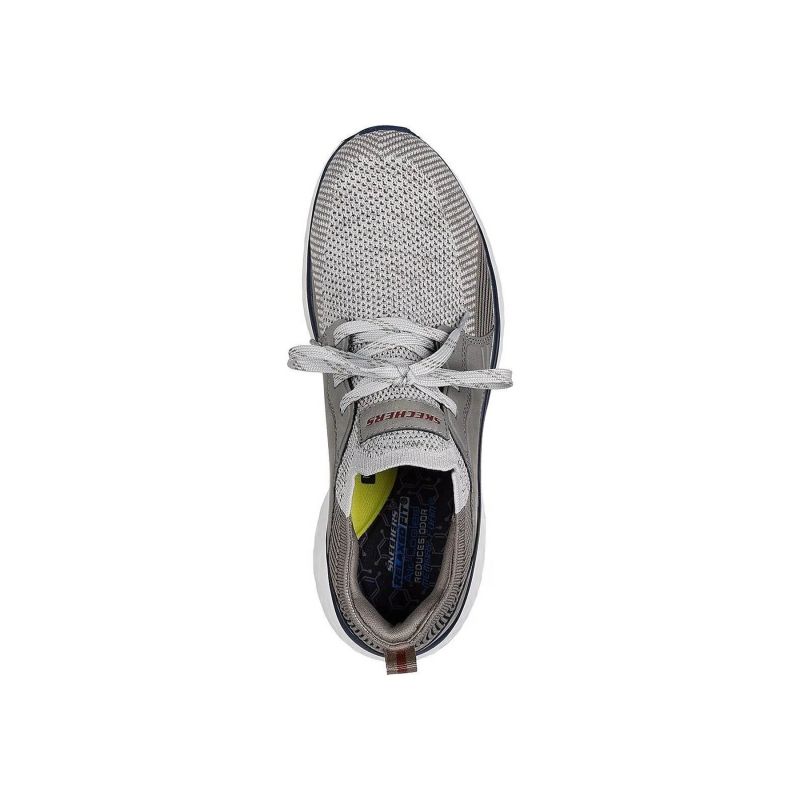 The Skechers Lancer-Dalton is a versatile men's sneaker that combines classic, modern style with all-day comfort. The upper, made of knitted mesh and synthetic materials, offers breathability, a flexible fit, and a lightweight construction, making these sneakers perfect for everyday wear and urban styling in a Taupe/Multi colorway.