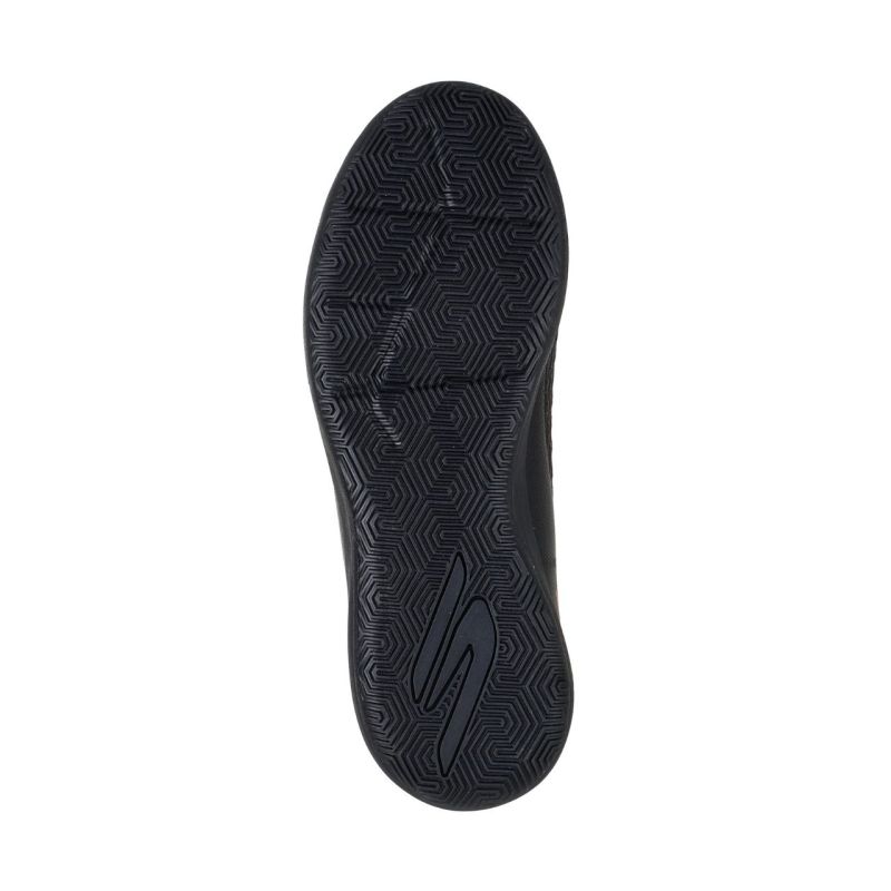 Skechers SKX_2 Kids' Soccer Shoes Black and Orange 252168L Skechers boys' soccer shoes are designed for indoor play. Synthetic leather upper. Low-cut design. Classic lacing. Textured overlay. Textile lining and EVA sockliner. Rubber outsole.