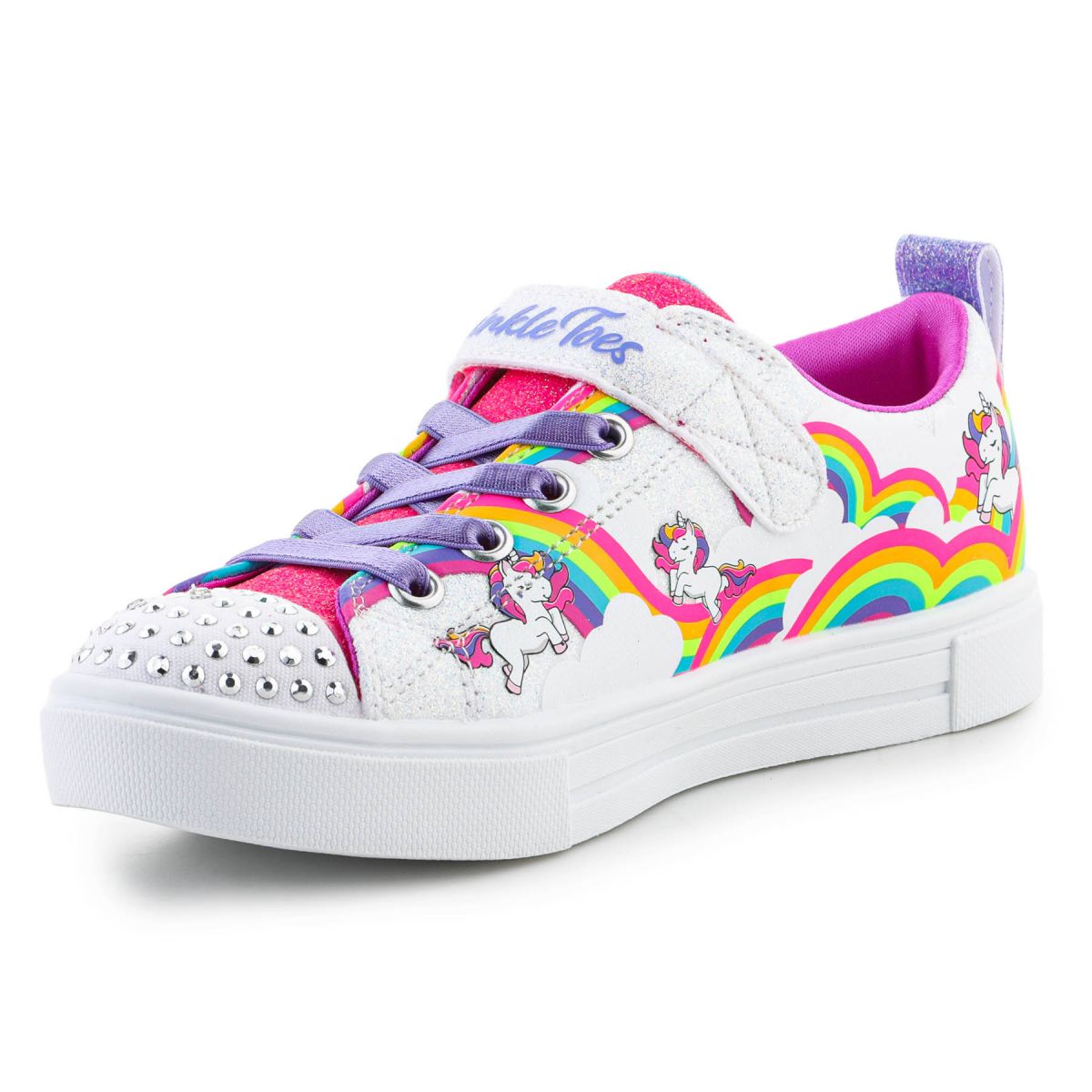 - Skechers Twinkle Toes S Lights Twinkle Sparks Jumpin Clouds 314809L-WMLT in white and multicolor are unique shoes for girls who love sparkles.