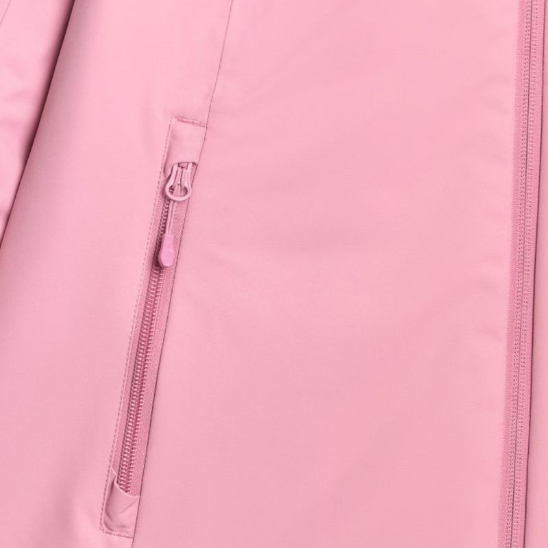 Ski pass pocket on the left arm · One-way main zipper with internal wind flap · Tunnel drawcord with stoppers at the bottom hem adjustment ·