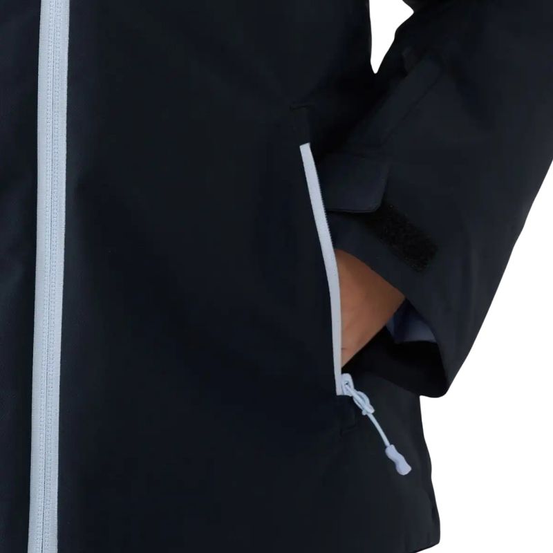 4F F0817 Girls' Ski Jacket Deep Black 4FJWAW25TTJAF0817 20S The 4F girls' ski jacket is a style perfect for moderate winter activities and everyday use. Technical data: Main material: 100% polyester Lining: 100% polyester Filling: polyester insulation. 100% polyester · Membrane: NeoDry 5000 · Water resistance: 5000 mm H2O · Breathability: 3000 g/m2/24h · Cut: regular, which comfortably fits the body · Standard cut reaching to the hips · Hydrophobic coating of the outer material limits moisture absorption · All seams are taped to prevent water penetration at the stitching · Integrated hood without adjustment · High collar · Cuffs with Velcro adjustment · 2 side pockets with zipper · Ski pass pocket with Velcro closure on the left arm · One-way main zipper · Adjustment of the bottom circumference with a tunnel drawstring with stoppers · Integrated powder skirt · Reflective elements · Adjustable sleeve length · Pre-shaped elbows · Polyester insulation ensures optimal thermal comfort · NeoDry membrane 5000/3000 protects against light rain or snowfall