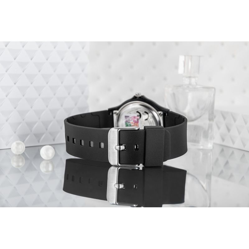 A harmonious combination of contrasting white and deep black lends it an elegant yet timeless character. The clean, white dial with bold black numerals ensures easy readability and subtly draws the eye, creating an elegant accent. The matte black strap seamlessly blends with the case, creating a seamless, harmonious whole – this is a watch that discreetly highlights feminine elegance, adding a touch of mystery and sophistication. Thanks to its lightweight construction and comfortable strap, the watch wears comfortably, almost like a second skin, while water resistance ensures protection even in those busier, more unexpected moments. It's not just a watch – it's a subtle accent that emphasizes your class and adds definition to every look on your wrist.