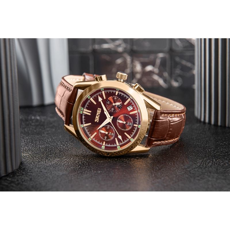 The Skmei 9127 is a watch that combines a classic soul with a modern character. Features such as a chronograph, date display, and 24-hour display make this model not only an ornament but also a practical companion for the man who values class and precision.