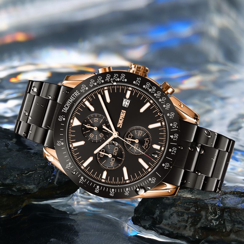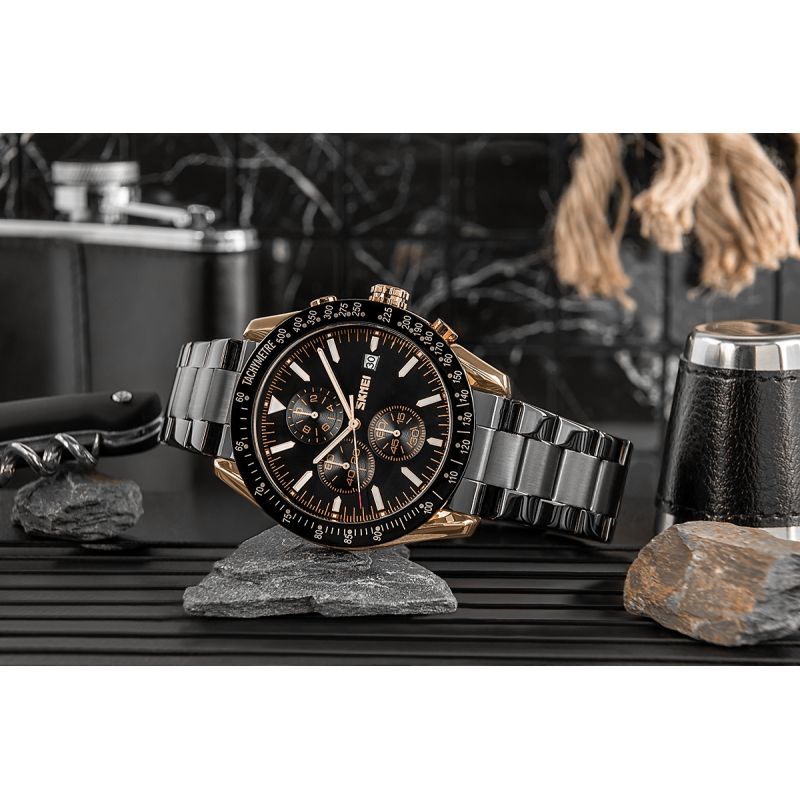 The design of the Skmei 9253 watch evokes classic and sporty models from exclusive brands such as the TAG Heuer Carrera and Rolex Daytona. It boasts an elegant look inspired by sporty chronographs, while the steel case and distinctive bezel give it a professional, distinctive look. Now you can wear this luxurious design on your wrist.