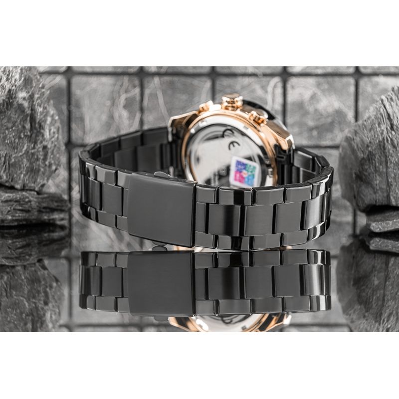 The Skmei 9253 watch features a color scheme inspired by exclusive premium timepieces, giving it a unique character. The copper case and black bracelet evoke luxury and elegance, contrasting perfectly with the deep black bezel and dial, characteristic of the best designs from global brands. The indices and hands, filled with a luminescent coating, not only emphasize the watch's luxurious style but also ensure excellent visibility in any lighting. The red accent on the seconds hand adds a sporty touch, combining elegance with dynamism.