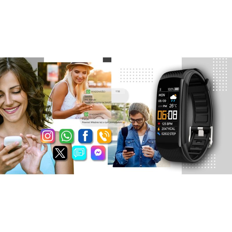 The Giewont GW200-2 smartwatch in black and white is a combination of sporty energy and modern elegance in a uniquely refined design. The smartwatch features two straps, black and white. Its dynamic appearance highlights the active user's character while also lending the device a touch of class. The slim design, vibrant colors, and carefully finished case create a cohesive whole that attracts attention both during training and in everyday situations. The large and readable screen, despite its narrow design, ensures convenient operation and clear information, while the high-capacity battery allows for long-lasting use without frequent charging. The smartwatch offers a range of health and activity-supporting features, such as heart rate monitoring, sleep quality analysis, and tracking daily steps and calories burned. It's a personal assistant that helps you maintain your fitness and balance every day. Thanks to stable Bluetooth connectivity, you can conveniently receive notifications from your phone, and intuitive operation makes using the smartwatch's functions a pure pleasure. The elegant appearance combined with a sporty character creates a device ideal for those who want to combine style with functionality. Giewont GW200-2 is a smartwatch that impresses with its appearance and offers practical solutions needed in a modern, active life.