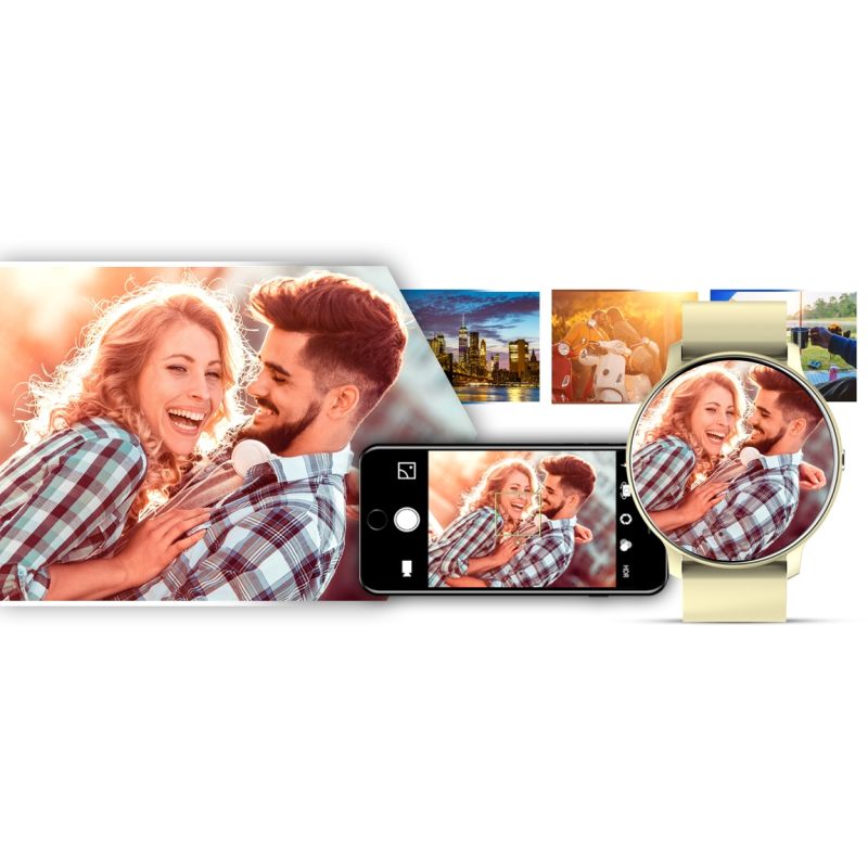 Now you can wirelessly take photos from your phone via a smartwatch connection. Simply trigger the smartphone shutter and capture photos that were previously out of your reach. Position your phone and capture the best moments of your life with your smartwatch. Position, capture, and share the photo with friends. With the ability to take photos from your smartwatch, you can effortlessly create your own personalized home screen that will further reflect your style.