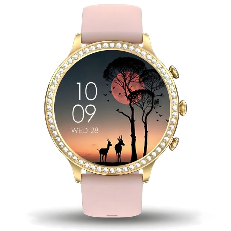 Meet the Gravity GT5 – a women's smartwatch created for those who want more from modern technology. Its elegant design, rhinestones, high-quality craftsmanship, and intuitive operation make it the perfect companion for both everyday wear and evening meetings. The vibrant display ensures excellent readability, while advanced health features like blood pressure and sleep monitoring, cinema mode, and activity mode help you navigate your daily life. The GT5's sports modes motivate you to stay active, while its durable design and water resistance ensure reliability in any situation. A multi-day battery means you can forget about daily charging, while full smartphone integration makes it easy to access notifications, calls, and music. The Gravity GT5 is more than just a smartwatch – it's a personal assistant, trainer, and stylish accessory all in one, making every day easier, healthier, and more convenient.