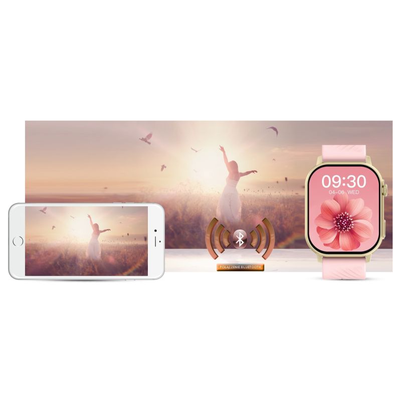 Smartwatch Gravity GT15-7 Pink Silicone Strap + Gold Bracelet