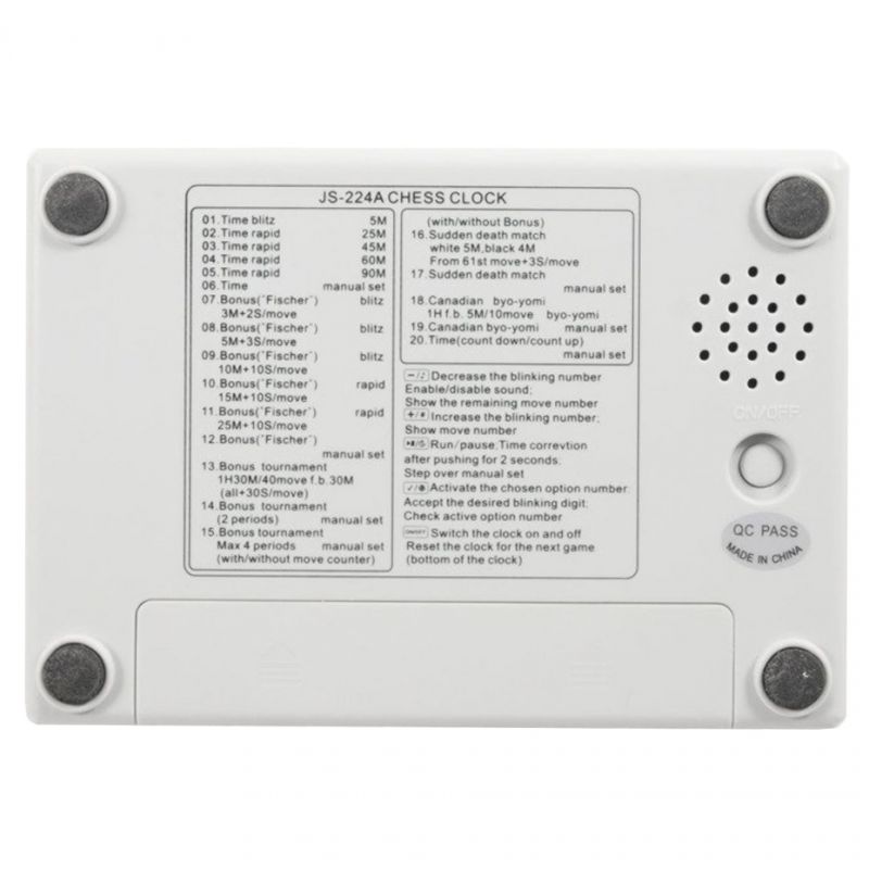 The Smj JS-224A chess clock is a professional device used during international chess tournaments and other games, such as checkers and scrabble.