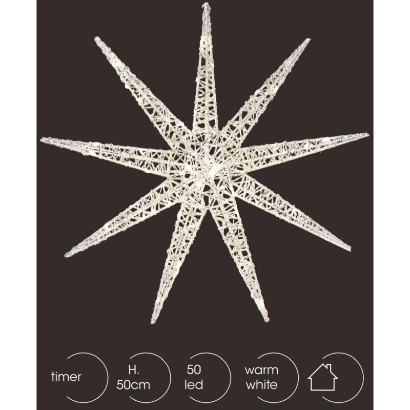 DECORATIVE SNOWFLAKE HANGING 50LED SILVER is an elegant decoration that fits perfectly into the Christmas atmosphere, but will also work well in everyday decorations.