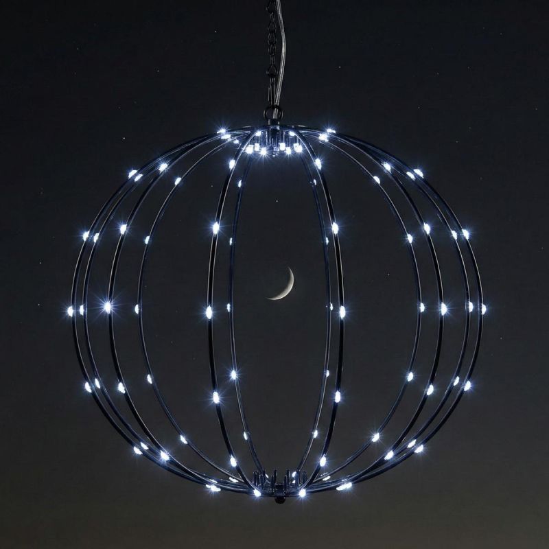 CHAIN WITH CLIP The open, openwork design of the ball is modern and stylish. The lamp is a decorative element both during the day and at night. It is a perfect addition to garden and patio arrangements.