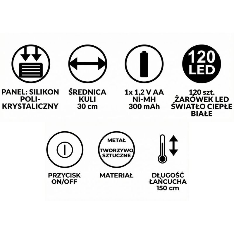 SOLAR HANGING LAMP BALL 30CM 120 LED WARM WHITE