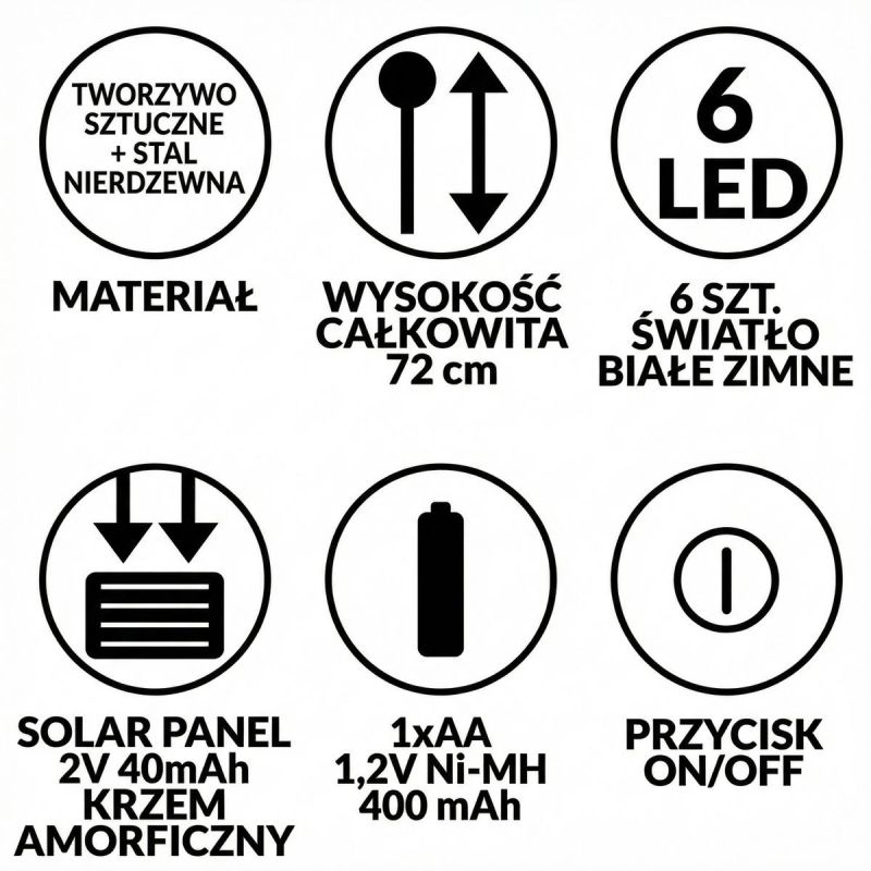 The heart of the lamp is a solar panel, whose function is to collect energy from the sun during the day and store it in a battery. The stored energy is released only when dusk falls outside. This is ensured by a built-in dusk sensor.