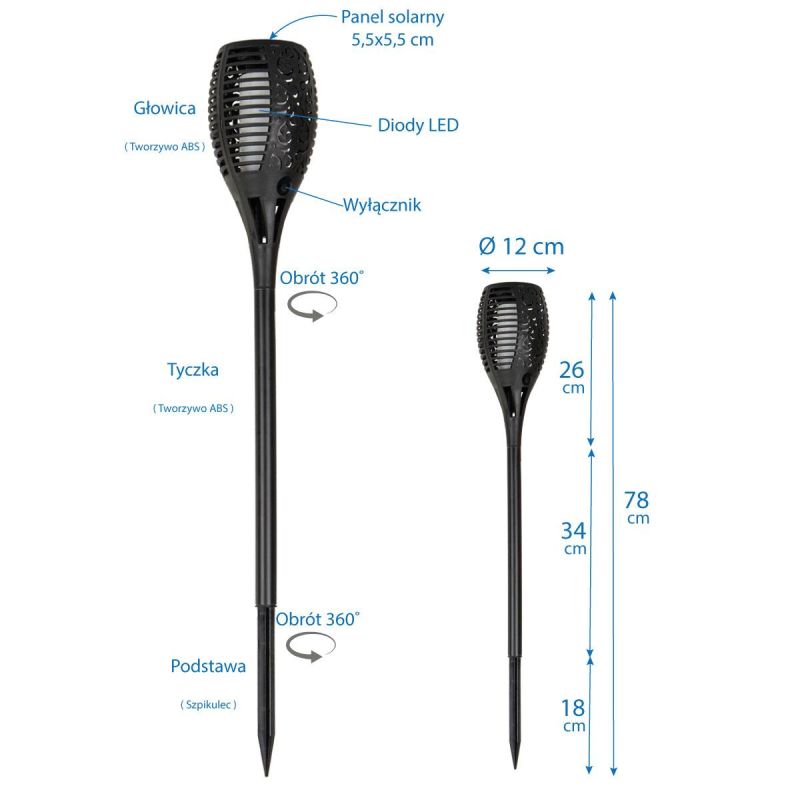 SOLAR TORCH DANCING FLAMES 12X12X78CM 36 LED is a practical and inexpensive light source that is perfect for outdoor use.