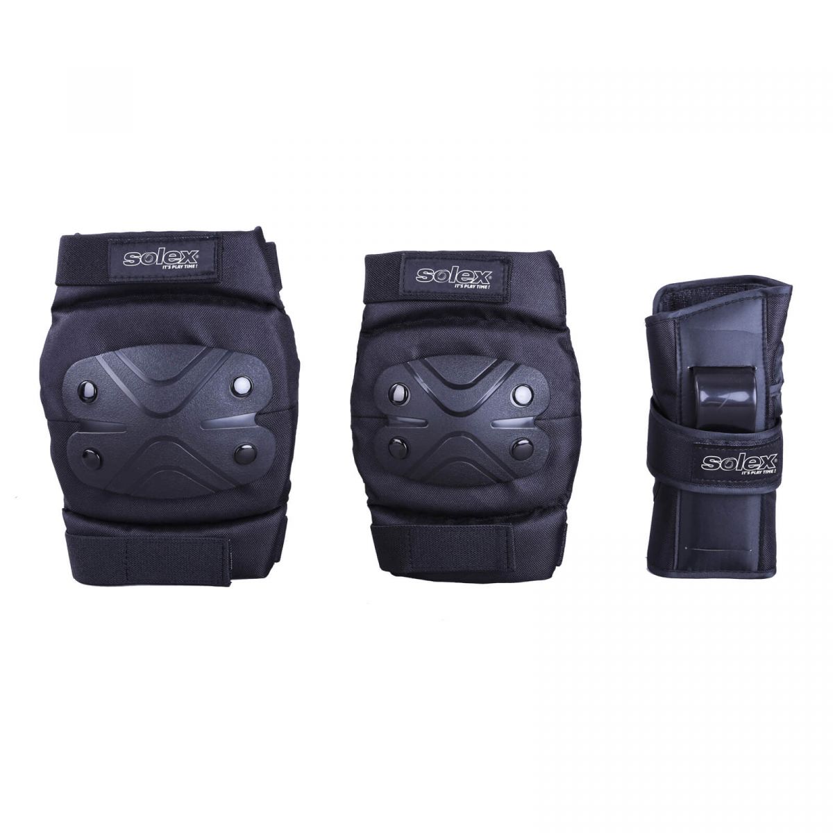 -  The Solex Combo Protector Set guarantees protection for these body parts without restricting movement. This allows for complete comfort and freedom of movement. Even a fall won't interrupt your fun, as the sturdy, plastic-reinforced (PP) protectors will protect you from injury.