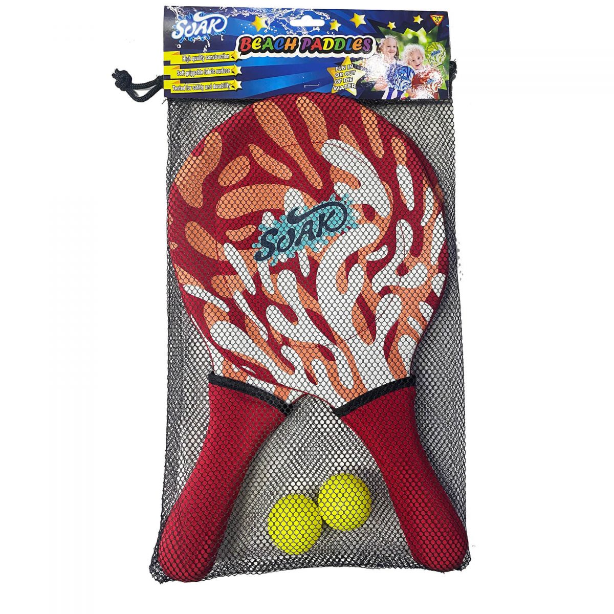 - The set includes 2 rackets, 2 rubber balls, and a storage net.