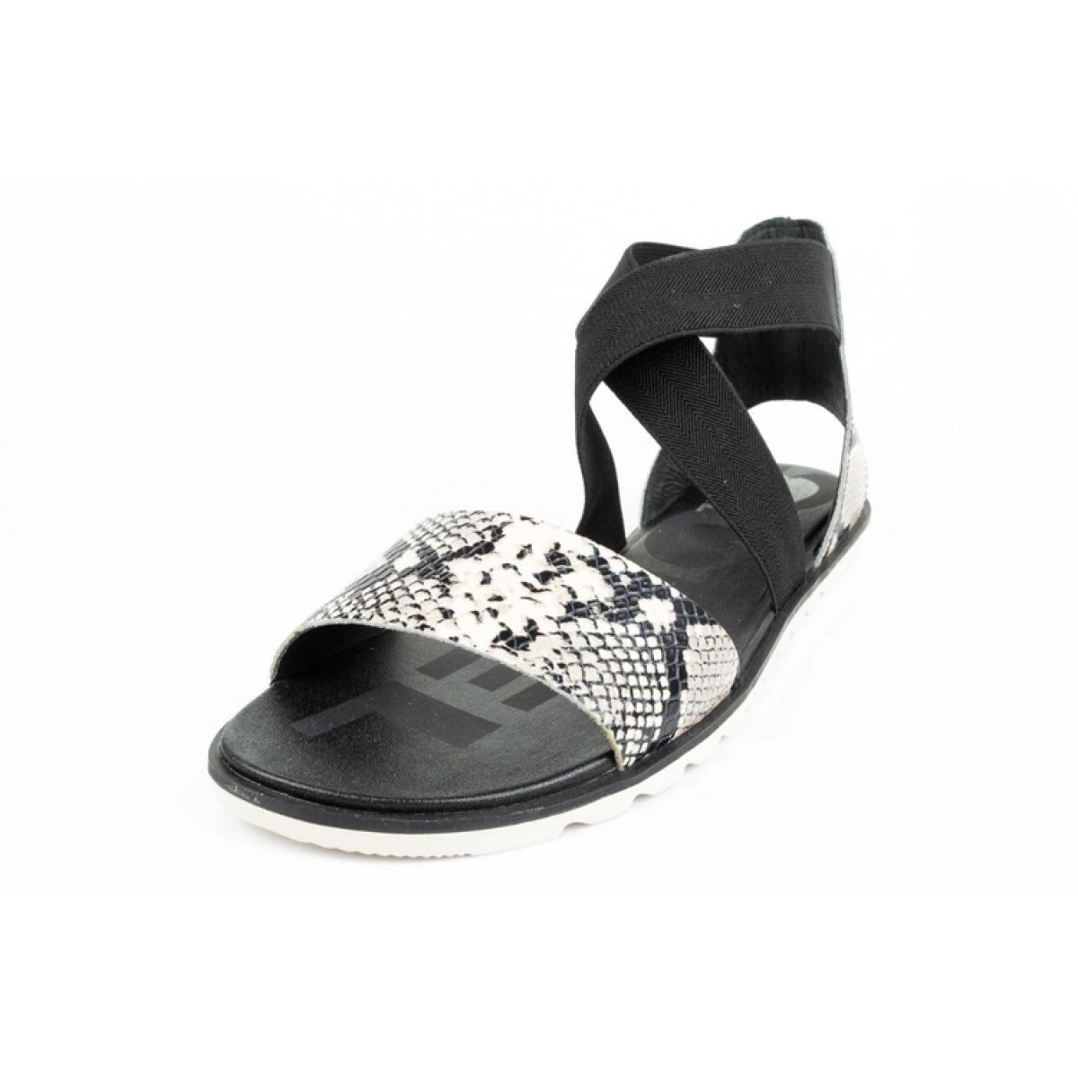 - The upper is made of full-grain leather with elastic straps and a cushioned foam insole.