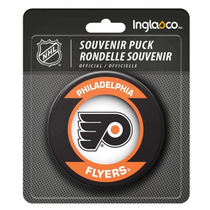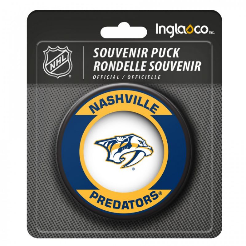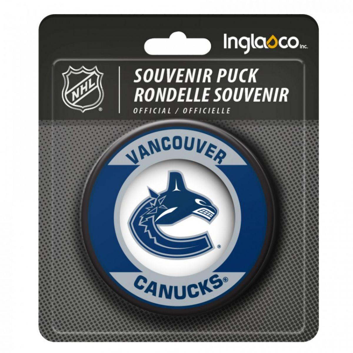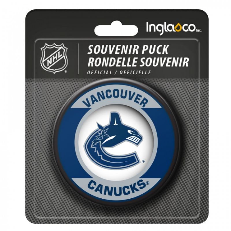 Inglasco NHL Retro Souvenir Hockey Puck This souvenir puck is an official 6-ounce (170-gram) Slovakian hockey puck that features a detailed team logo on one side and the NHL logo on the other. It measures approximately 3 inches in diameter.