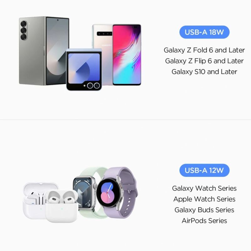 Two USB-A ports allow you to charge two devices simultaneously, providing super-fast charging – 18W for smartphones and tablets and 12W for smartwatches and headphones. Equipped with advanced battery protection, it offers technologies to prevent overcharging, overheating, and short circuiting, ensuring maximum safety for your devices.
