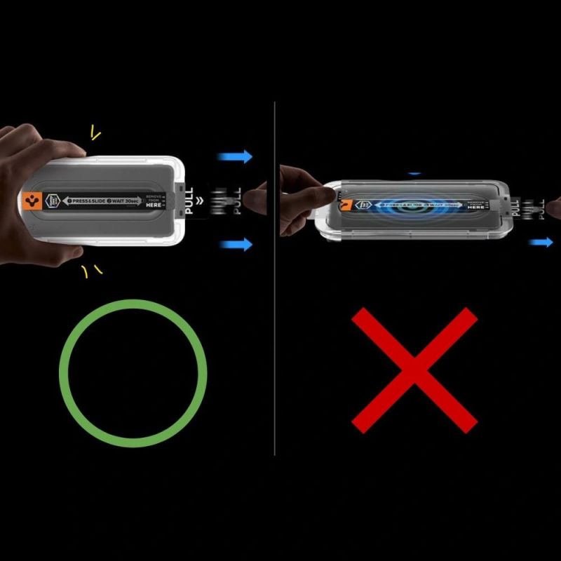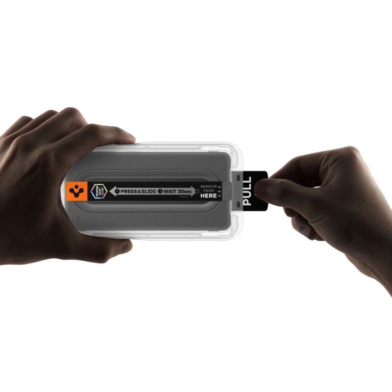 Spigen Glas.tR "EZ Fit Pro" tempered glass is a high-quality screen protector with a convenient EZ Fit Pro mounting system that allows for quick, precise, and hassle-free application without bubbles or slippage. It consists of multiple layers, including an oleophobic coating to reduce fingerprints, a protective layer to absorb impacts, and tempered glass with a 9H hardness that effectively protects the screen from scratches and damage.