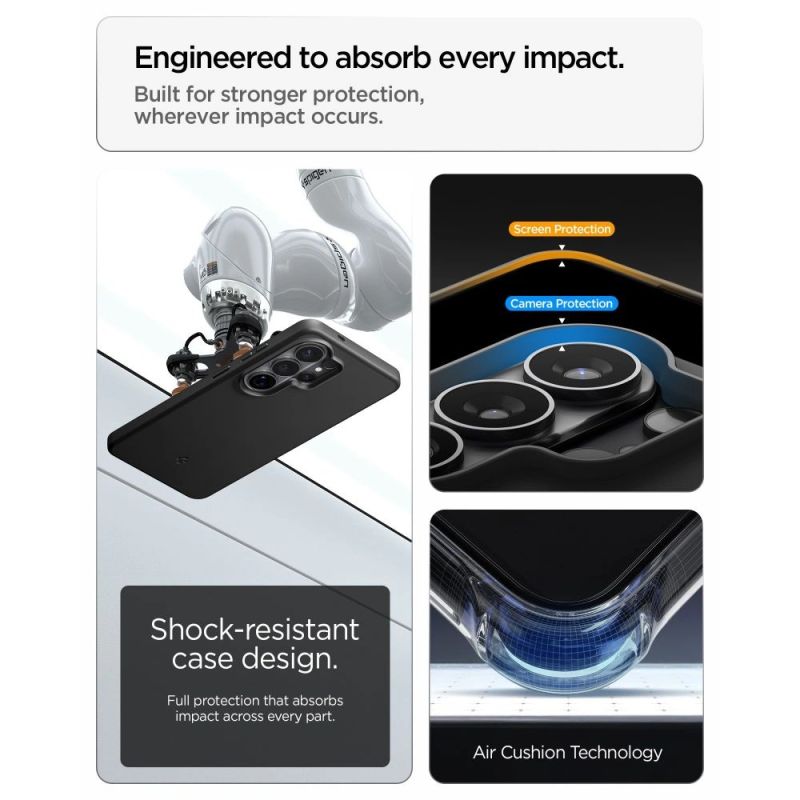 The Spigen Thin Fit Mag MagSafe is an ultra-thin and lightweight case designed for users who value minimalism and full functionality. The built-in magnetic MagSafe ring ensures a precise fit for magnetic accessories and stable, fast wireless charging without having to remove the case.