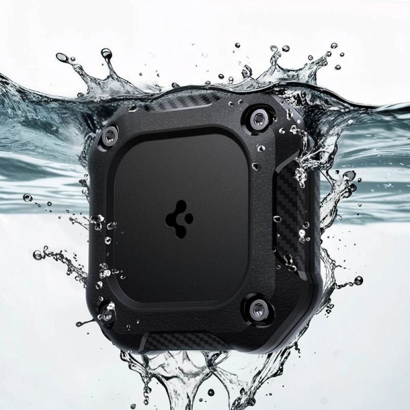 Spigen Tough Armor is an armored case for the AirTag designed for maximum protection and reliability in all conditions. Its multi-layer construction with high-quality materials effectively absorbs drops and impacts, while the IPX8 waterproof rating guarantees complete protection against water immersion and a barrier against dust and dirt.