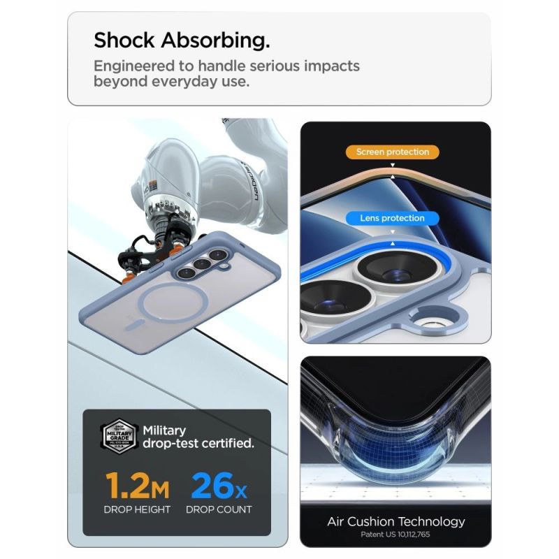 The Spigen Ultra Hybrid Magsafe is a case that combines the best of protection and aesthetics, providing your smartphone with both security and a unique look. Thanks to its unique hybrid construction (TPU + PC), which combines a durable frame with a transparent panel, your phone retains its original design while being effectively protected from damage. Reinforced corners with air cushions effectively absorb shock, providing additional drop protection.
