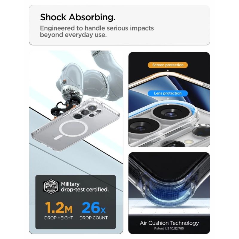 The Spigen Ultra Hybrid Magsafe is a case that combines the best of protection and aesthetics, providing your smartphone with both security and a unique look. Thanks to its unique hybrid construction (TPU + PC), which combines a durable frame with a transparent panel, your phone retains its original design while being effectively protected from damage. Reinforced corners with air cushions effectively absorb shock, providing additional drop protection.