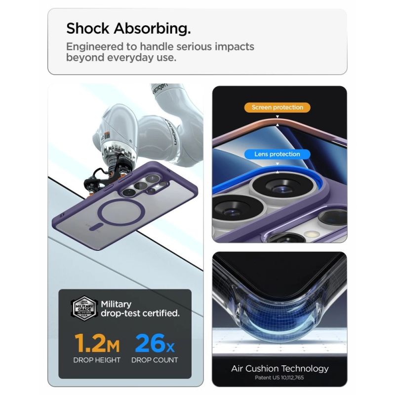 The Spigen Ultra Hybrid Magsafe is a case that combines the best of protection and aesthetics, providing your smartphone with both security and a unique look. Thanks to its unique hybrid construction (TPU + PC), which combines a durable frame with a transparent panel, your phone retains its original design while being effectively protected from damage. Reinforced corners with air cushions effectively absorb shock, providing additional drop protection.