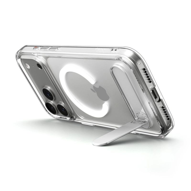 The Spigen Ultra Hybrid "S" MagSafe is a modern case that combines solid protection with practical features. Its hybrid TPU and polycarbonate construction effectively shields your phone from scratches, shocks, and drops. The built-in MagSafe system with a strong magnetic ring ensures stable and quick connection of accessories such as chargers and mounts. An integrated stand provides added convenience, allowing you to comfortably watch movies or make video calls in both portrait and landscape orientations. Raised edges around the screen and camera enhance the safety of the device's most delicate elements, while precise cutouts ensure complete comfort during everyday use.