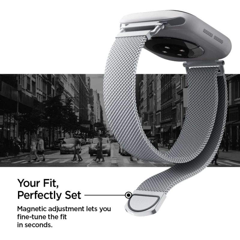The Spigen WBM4 is an elegant strap made of high-quality stainless steel that gives it a timeless look. Its modern design combines durability with refined style, making the watch not only functional but also an elegant addition to any outfit.