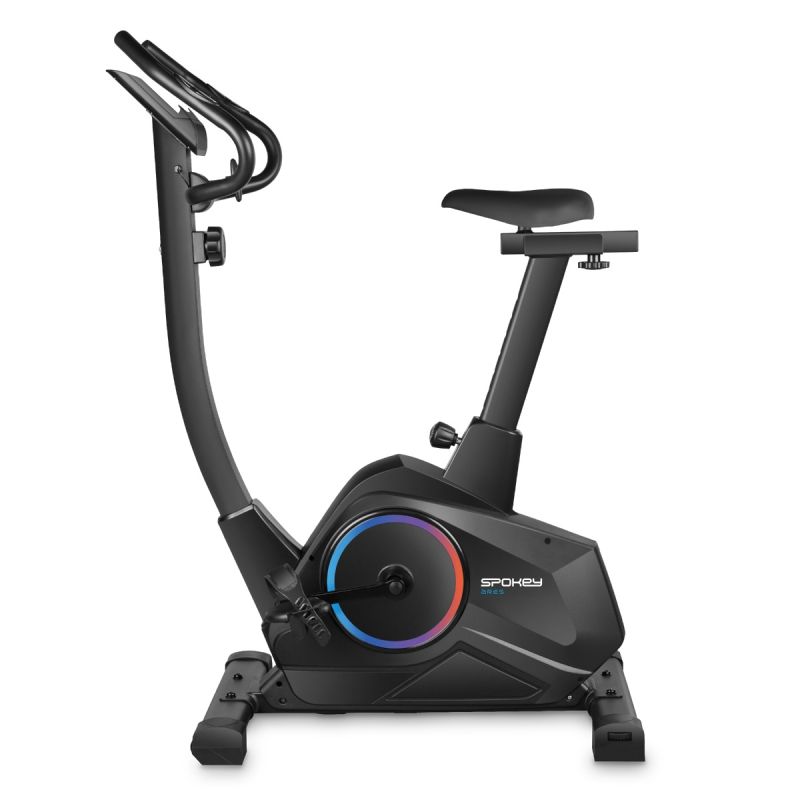 Spokey ARES Magnetic Exercise Bike – a smooth and quiet workout in the comfort of your home. This exercise bike features an 8kg flywheel, vertical and horizontal saddle adjustment, and handlebar angle adjustment. Equipped with heart rate sensors, a tablet holder, and an LCD display showing key workout parameters. Compact and comfortable – perfect for home use. The Spokey ARES exercise bike is a robust and comfortable exercise bike with a magnetic resistance system that allows you to workout in silence and comfort – whenever you feel like it. With 8-level intensity control, built-in heart rate sensors, and adjustable saddle and handlebars, the Spokey ARES exercise bike adapts to your needs – not the other way around. Why is it worth trying the Spokey ARES exercise bike? Smartphone or tablet holder. With a dedicated space for your mobile device, you can conveniently use fitness apps, listen to music, or watch your favorite TV series – without interrupting your workout. Everything you need is at your fingertips. Handlebar and Saddle Adjustment: The Spokey ARES exercise bike ensures your comfort – it allows you to adjust both the height and distance of the saddle, as well as the handlebar angle. This helps you maintain proper posture and increase the effectiveness of your workout. Pulse Measurement from the Handlebar: Touch sensors located on the handlebars allow for real-time heart rate monitoring, allowing you to exercise in the appropriate exercise zone and better control your exercise intensity. Quiet Operation and Smooth Movement: The 8 kg flywheel ensures smooth and stable pedaling, while the magnetic resistance system guarantees quiet operation – ideal for workouts at home, even in the evenings. You can work on your fitness while avoiding disturbing your neighbors. Easy Transport and Compact Size: After your workout, you can easily move the bike – thanks to the built-in transport wheels, you can easily move the ARES exercise bike. Thanks to its small size, the equipment is easy to set up even in a small home space. The Spokey ARES exercise bike is a compact and functional piece of equipment, designed for everyday, comfortable workouts at home. Thanks to the 8-level, manually adjustable resistance scale, you can easily adjust the difficulty level to your goals – whether it's burning calories, improving your fitness, or simply active relaxation. The ergonomic design allows for a wide range of adjustments – both vertically and horizontally, as well as the handlebar tilt. This makes it easy to adjust the bike to the user's physique, improving ride comfort and training effectiveness. The LCD display shows key parameters such as time, speed, distance, calories, heart rate, and total mileage (ODO). Handlebar-mounted heart rate sensors give you full control over your exercise intensity, while a phone or tablet holder makes it easy to combine training with entertainment or using fitness apps. Technical data Type: upright exercise bike Resistance type: magnetic (manual adjustment) Flywheel weight: 8 kg Number of resistance levels: 8 Display functions: time, speed, distance, calories, pulse, scan, ODO Pulse measurement: yes, sensors on the handlebar Saddle adjustment: vertical (70–100 cm) and horizontal Handlebar adjustment: change the angle of inclination Crank: 3-piece, high quality Dimensions: 95 × 52 × 128 cm Max. user weight: 120 kg Device weight: 28 kg Transport: transport wheels Extras: tablet or smartphone holder Certificates, standards and warnings Compliance with EU safety standards. The product is intended for home use only. The device is not intended for children. To ensure your Spokey ARES exercise bike lasts as long as possible and maintains its full functionality, remember a few simple rules for use and care: After each workout, wipe the handlebars, saddle, and housing with a dry or slightly damp cloth to remove sweat and dust. Do not use harsh detergents – they can damage the surface. Regularly check the stability of screws and fasteners – tighten them if necessary to ensure safe use. Place the bike on a level, hard surface, preferably on a protective mat, to prevent the bike from sliding and protect the floor. Do not store the device in damp rooms such as a bathroom, basement, or garage – this can shorten the life of the metal and electronic components. During training, monitor your heart rate and the parameters on the screen to train in the appropriate exercise zone and consistently improve your fitness. If the device is not in use for an extended period, unplug it and cover it with a cover or cloth to protect it from dust. With proper care, your ARES bike will stay in great shape for a long time – ready for your next workout! Frequently Asked Questions: Is the ARES bike suitable for beginners? Yes.