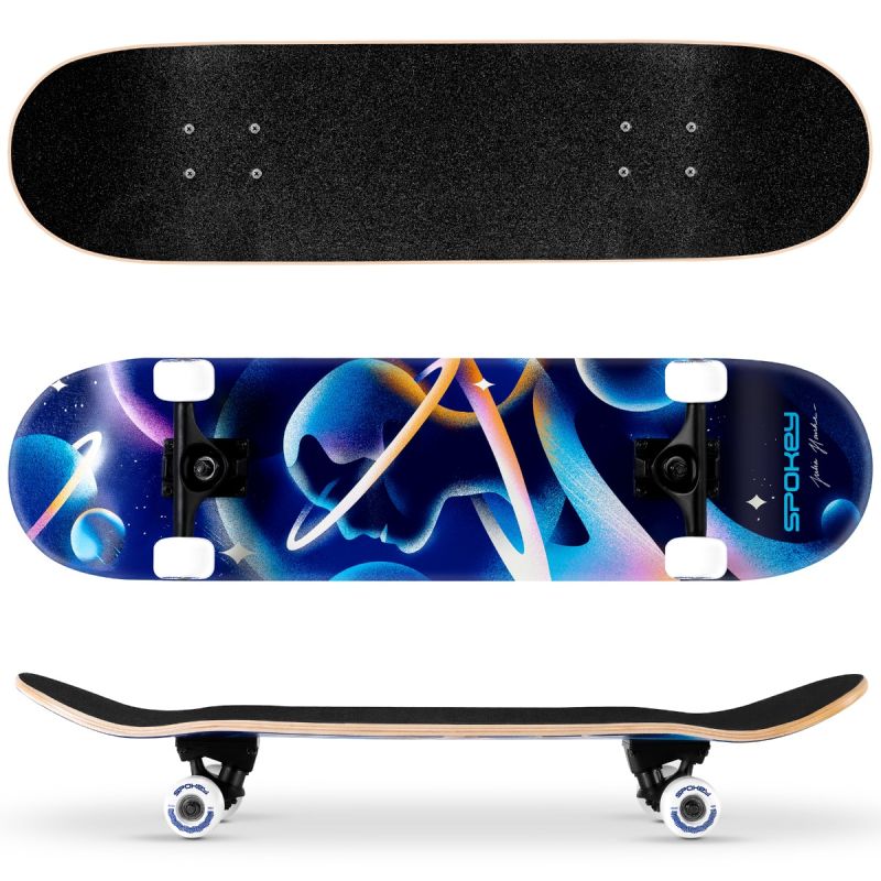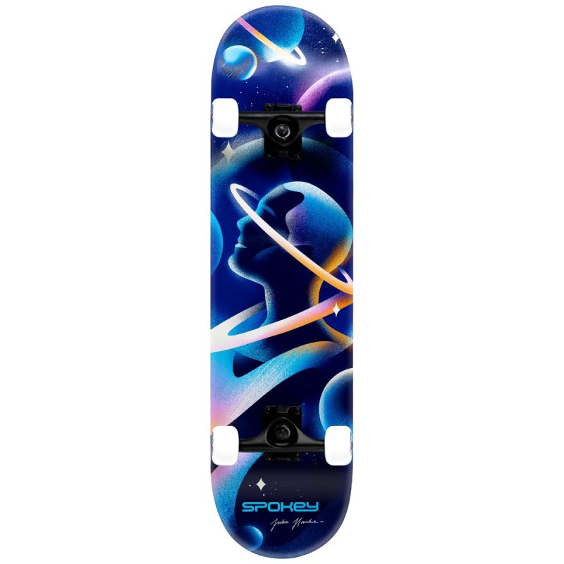 A classic skateboard designed for recreational riding on paved surfaces. Crafted from 9-ply Chinese maple, it's flexible and highly durable. ABEC-3 bearings and 92A rubber wheels guarantee excellent speed and grip. Adela Madej's unique, original graphics set this skateboard apart from many others in its category. It's an excellent choice for skateparks and dynamic freestyle riding. Parameters: Deck material: 9-ply Chinese maple Deck size: 78.7 x 20 cm Deck shape: double kick Deck cover: black grip tape Truck: 5" seagull aluminum Wheels: 92A PU, 52 x 36 mm Bearings: ABEC-3 Maximum user weight: 100 kg Compliance with the standard: EN - 13613 Recommended for: recreational riding Skill level: beginner, intermediate Safety information: Personal protective equipment should be used. Not suitable for users weighing more than 100 kg. To be used under adult supervision. Do not use in street traffic.
