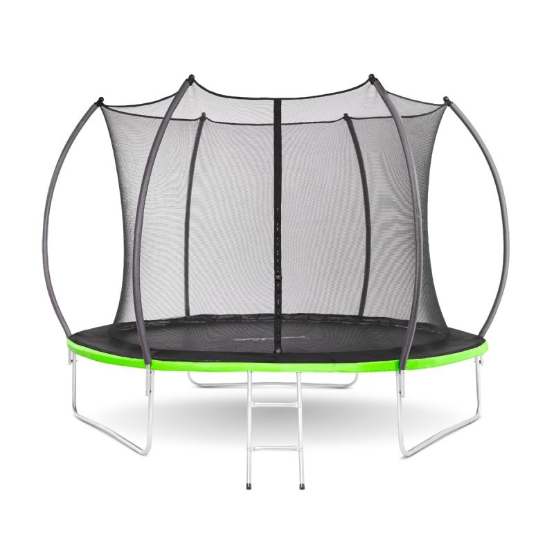 - The 180 cm high net protects against falling out and is equipped with a zipper to secure entry onto the trampoline.