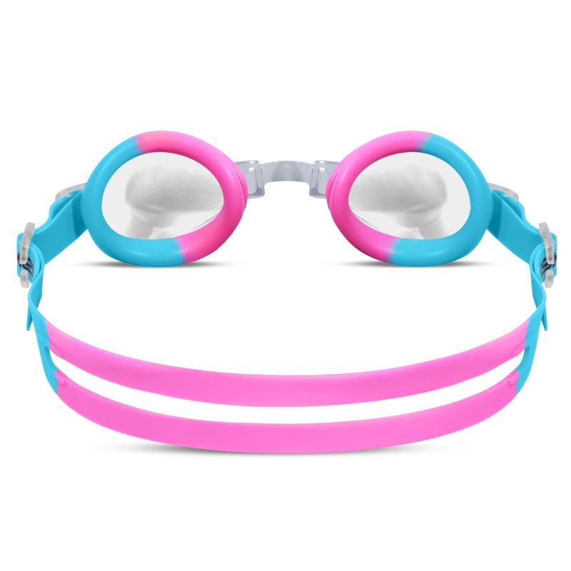 Children's swimming goggles made of high-quality, durable materials. Equipped with an anti-fog coating for excellent vision. Additionally, the lenses are coated with a UV filter, making them suitable for outdoor swimming. Soft silicone seals ensure optimal fit, preventing water from entering the goggles. Adjustable nose bridge allows you to adjust the distance between the goggles to your child's face. A double silicone strap makes putting the goggles on easier. Technical data: Lenses: Polycarbonate with UV protection, Clear lens, Coating: Anti-Fog, Seal: Silicone, Strap: Silicone, Adjustable nose bridge: Adjustable field of view: Standard protective case. Safety information: Protection level: Class I. Product for surface swimming. Use under adult supervision. Use in water deep enough for the child to stand on the bottom.