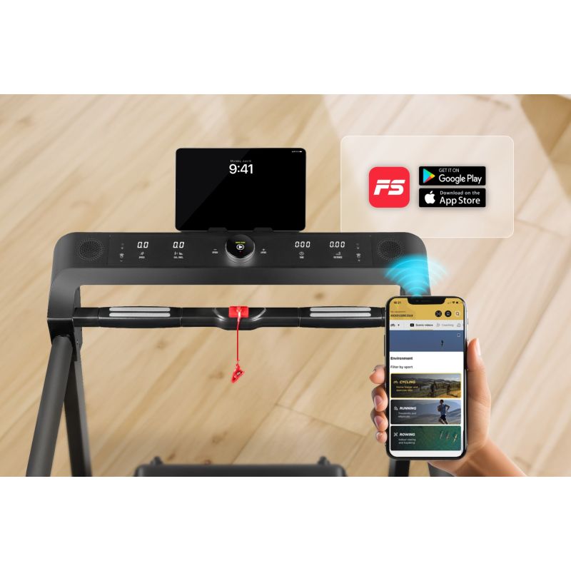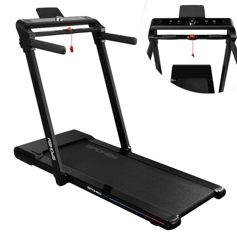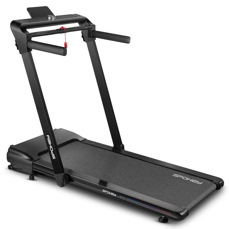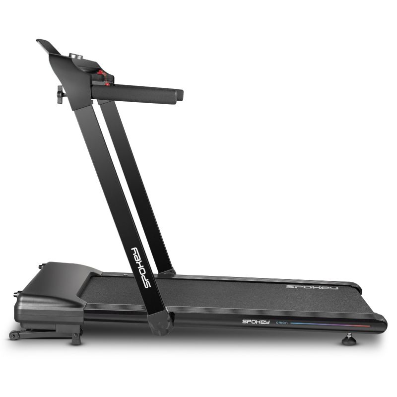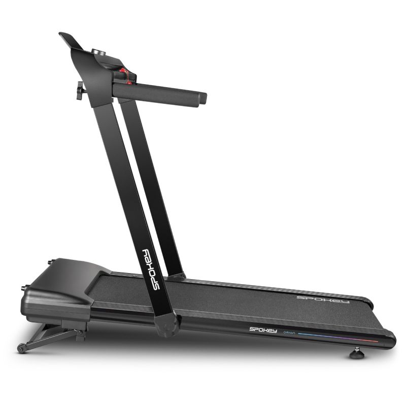 Spokey ORION – Electric Treadmill with Innovative Gesture Control. Spokey ORION is an innovative treadmill designed for maximum comfort and workout effectiveness. Thanks to hand control and a wide incline range, you can tailor each workout to your individual needs and abilities. The compact design works well even in small spaces. Spokey ORION is a next-generation treadmill that will take your home cardio training to the next level. Thanks to the innovative gesture control function, you can change the speed without having to focus on the console or remote control – just a wave of your hand is enough. Automatic incline angle adjustment (up to 15 levels) allows you to tailor the intensity of your workout to your needs, while 15 built-in training programs provide training variety. It's an excellent choice for those who value modern solutions, comfort of use, and effective training regardless of the weather. Why is the Spokey ORION electric treadmill worth trying? Gesture speed control. A revolutionary feature that allows you to change speed without using buttons – just a wave of your hand is enough! This ensures maximum comfort and smoothness of your workout, especially at higher speeds. Automatic Incline (1-15 Levels) The ability to change the incline angle allows you to diversify your workouts – from walking on flat ground to simulating an uphill run. It increases muscle engagement and calorie burning efficiency. 15 Training Programs A wide selection of pre-set training modes allows you to adjust the intensity of your workouts – for both beginners and advanced users. Each program is divided into 20 sections with variable speed and incline. Pulse Measurement Built-in sensors allow you to monitor your heart rate, allowing you to adjust the pace of your workout to your individual abilities and fitness goals. Safety Key For maximum safety – immediately stop the treadmill if necessary. Always attach the key to your clothing before starting your workout. Detailed Description The Spokey ORION treadmill combines modern design with full functionality and training innovations. Gesture speed control introduces a completely new standard in home training – you don't have to interrupt your running rhythm to adjust the speed to your needs. Automatic incline from 1-15 levels allows you to precisely regulate the intensity of your workout. With 15 diverse training programs, you can achieve all your goals – from burning fat to improving your fitness. Built-in speakers and the ability to connect to the Fitshow app via Bluetooth are additional advantages. Technical data: Type: electric treadmill Motor power: 2.0 HP Maximum speed: 16 km/h Incline: automatic, levels 1 to 15 Display: LED Display functions: time, speed, distance, calories burned, pulse, incline, pause Pulse measurement: yes Bluetooth: yes Built-in speakers: yes Training programs: 15 Dimensions: 150 x 74 x 115 cm Dimensions when folded: 184 x 74 x 22 cm Running belt: 120 x 45 cm Device weight: 40 kg Maximum user weight: 100 kg Storage: horizontal Transport wheels: yes Certificates, standards and warnings Compliance with EU safety standards. The product is intended for home use only. Not intended for children. Use and Care: Before each use, make sure the treadmill is placed firmly on a flat surface. Regularly check the running belt and maintain its proper tension. Do not use the treadmill in damp rooms. Turn on the treadmill and adjust the speed and incline to your preference. Wear appropriate athletic shoes with non-slip soles. After finishing your workout, turn the treadmill off and unplug it. Regularly clean the running belt with a dry or slightly damp cloth. Frequently Asked Questions: Which incline angle is right for me? Incline level 1 simulates natural walking, and higher levels significantly increase leg muscle engagement (hips, quadriceps, calves) and calorie burning, although they may also place greater strain on joints. For beginners: A range of 1-4 is ideal for starting out. You can gradually increase this as your fitness level improves. For advanced users: Higher levels, up to 15, enable a more intense workout, engaging the lower body more and improving exercise effectiveness. Safety Information: Never expose the treadmill to moisture or rain. The treadmill is not intended for outdoor use. Do not use it near a pool or other wet environment. DANGER – Improper connection of the equipment-grounding conductor can result in a risk of electric shock. If in doubt as to whether the product is properly grounded, contact a qualified electrician or serviceman. Do not modify the plug supplied with the product.