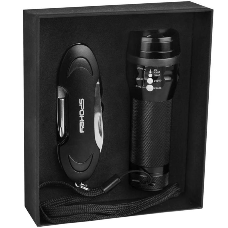 - It includes a multi-purpose pocket knife that includes: a knife, scissors, a can opener, a Philips screwdriver, a nail cleaner, a nail file, a corkscrew, a bottle opener, and a flat screwdriver.
