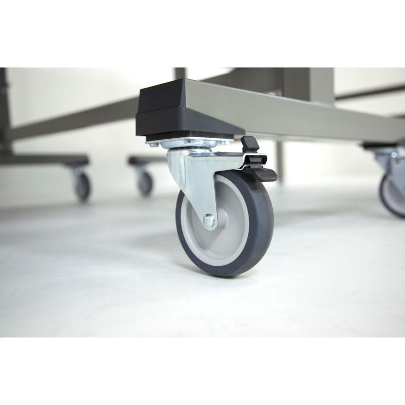 - 4 swivel wheels with a diameter of 100 mm with rubber tread on each tabletop, 2 with locking mechanism