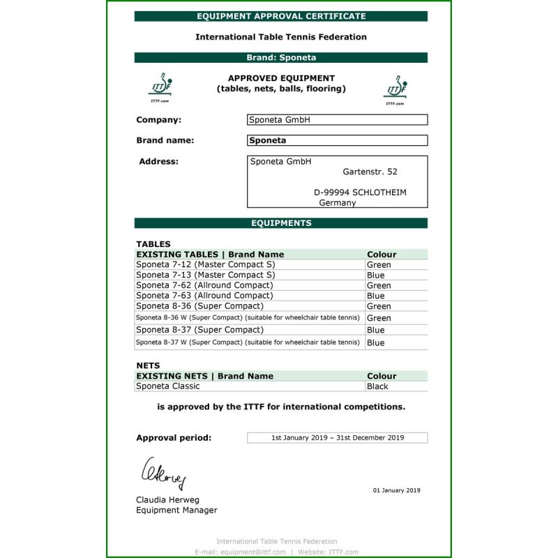 • ITTF certified