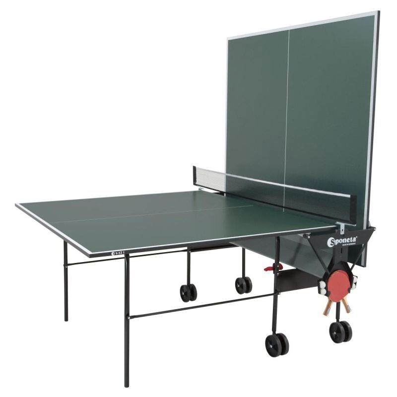 Play friendly ping-pong matches on the sturdy SPONETA S1-12i table. Have fun while practicing the basics! This equipment is ideal for recreational play indoors, for two or one player. Thanks to the foldable table for solo practice, you can practice the speed necessary for the classic game on your own. This table is an ideal choice for beginners, perfect for learning the basics of the game, and is intended for indoor use only. It is not resistant to heat, cold, or sunlight.