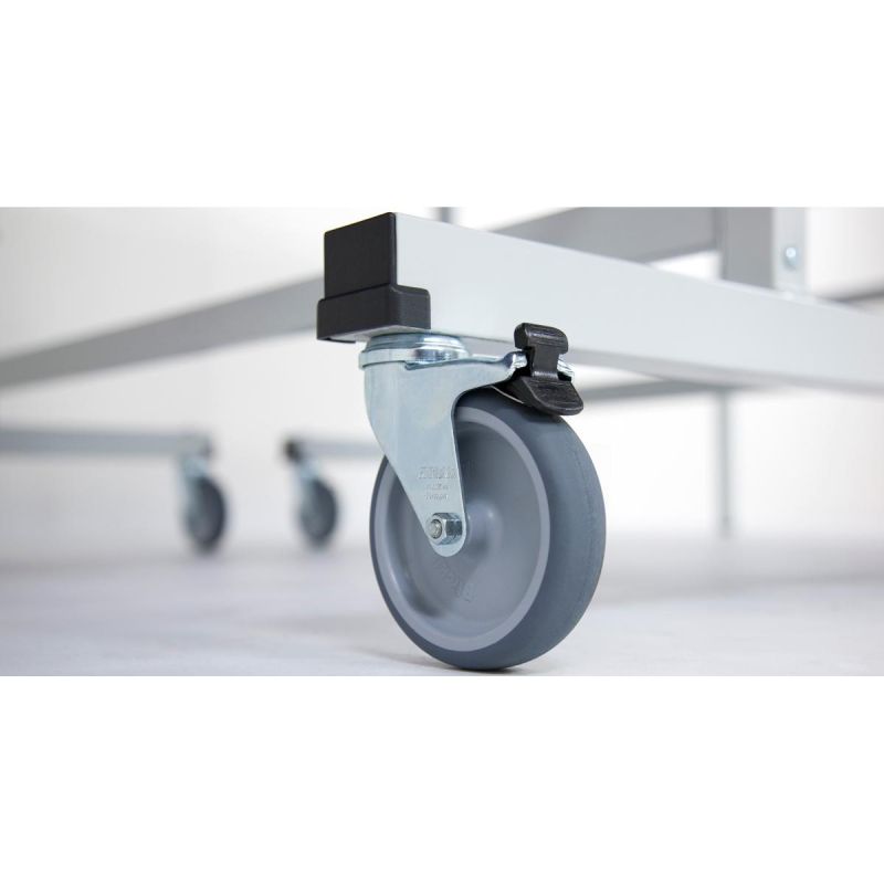 - 4 swivel wheels with a diameter of 100 mm with rubber tread on each tabletop, 2 with locking mechanism