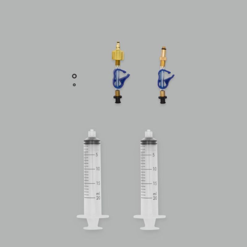 The Bleedkit.com Basic Edge kit includes the basic components for bleeding SRAM hydraulic brakes with a Bleeding Edge bleed port. Block and fluid not included.