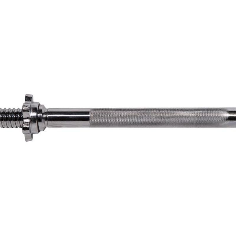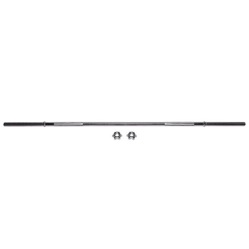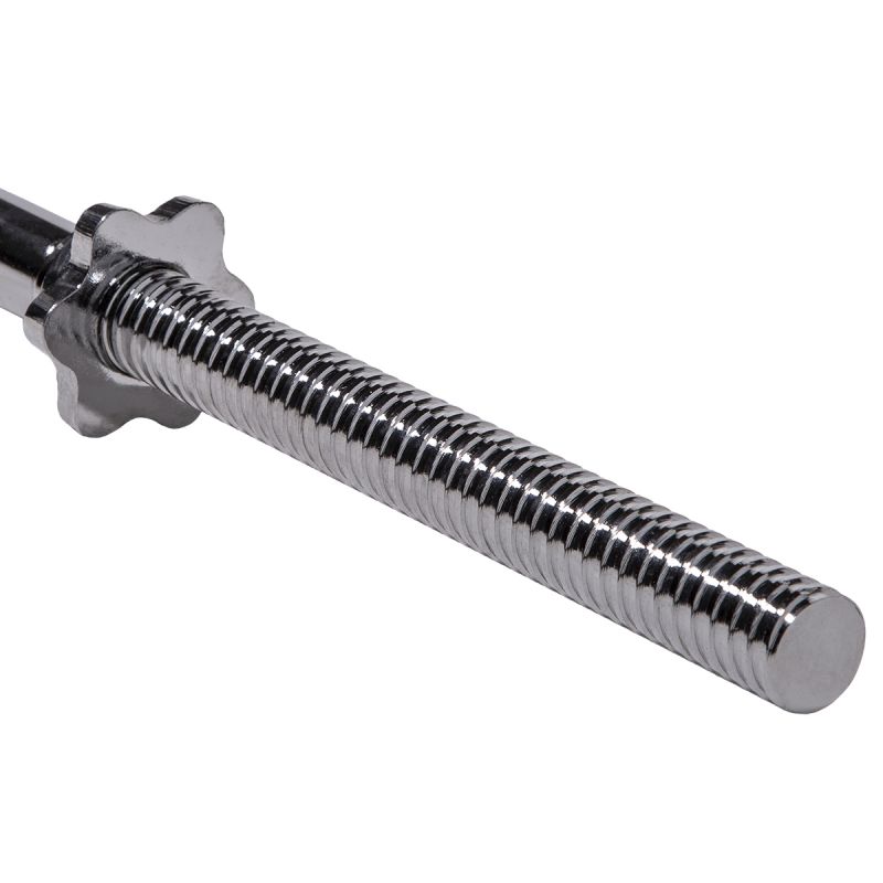 These clamps ensure a stable weight position on the bar during exercise. The inner nuts have rubber seals to prevent the weight from loosening. The bar is threaded, allowing for quick and safe weight placement.