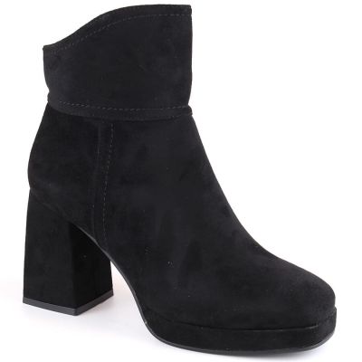 - Suede ankle boots with a block heel and platform, insulated, M.Daszyński W SAN24A, black