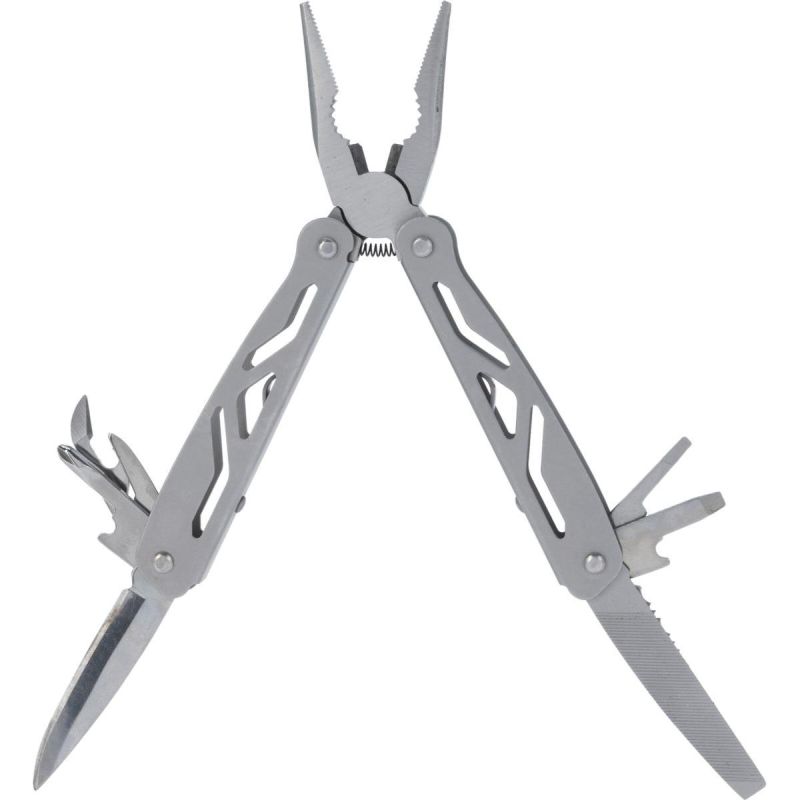 The 13-in-1 Silver Combination Pliers Survival Kit lets you cut fishing line, saw off unwanted branches, trim thread, tighten or loosen screws, and even drive nails. It's perfect for DIY enthusiasts, anglers, outdoor enthusiasts, and more.