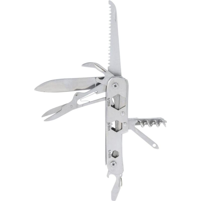 - the pocket knife has 15 different tools, including an 8, 9, and 10 mm wrench
