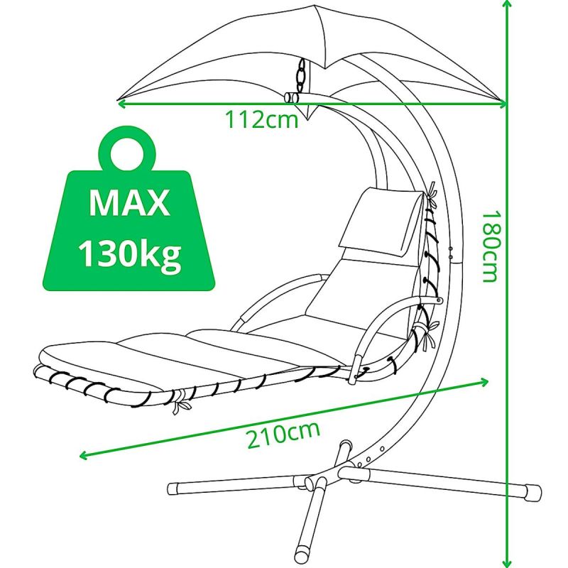 The strong and thick steel frame will support a maximum load capacity of up to 130 kg, and the included umbrella will protect you from the strong sun.