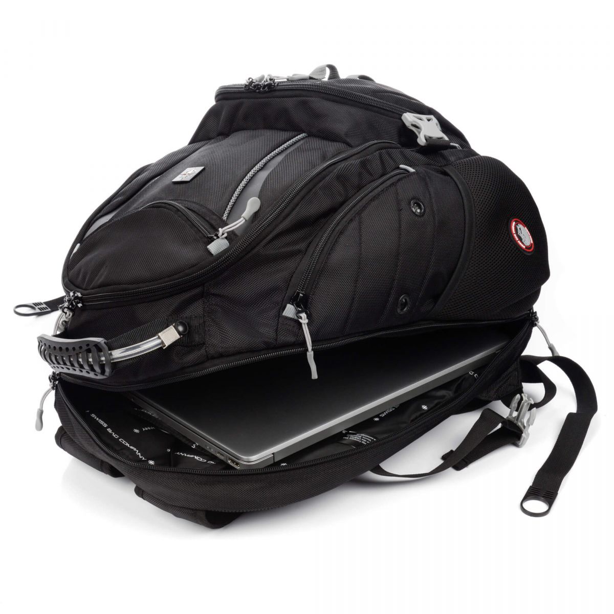 The ST.Moritz with Laptop Bag is a professional backpack for travel, school, and sports. It's chosen by the most discerning customers. High-quality use is ensured by a dedicated compartment for a laptop and phone, providing excellent protection. Additionally, there's a separate compartment for books and textbooks. The front features attractive pockets for documents, cards, and keys. Side pockets can be used to store other items, making the backpack even more practical and functional. Ergonomic and adjustable back straps ensure high carrying comfort. A headphone port on the shoulder is a great feature, allowing you to listen to your music safely and comfortably. The St.Moritz is a backpack you'll be happy with for years to come.